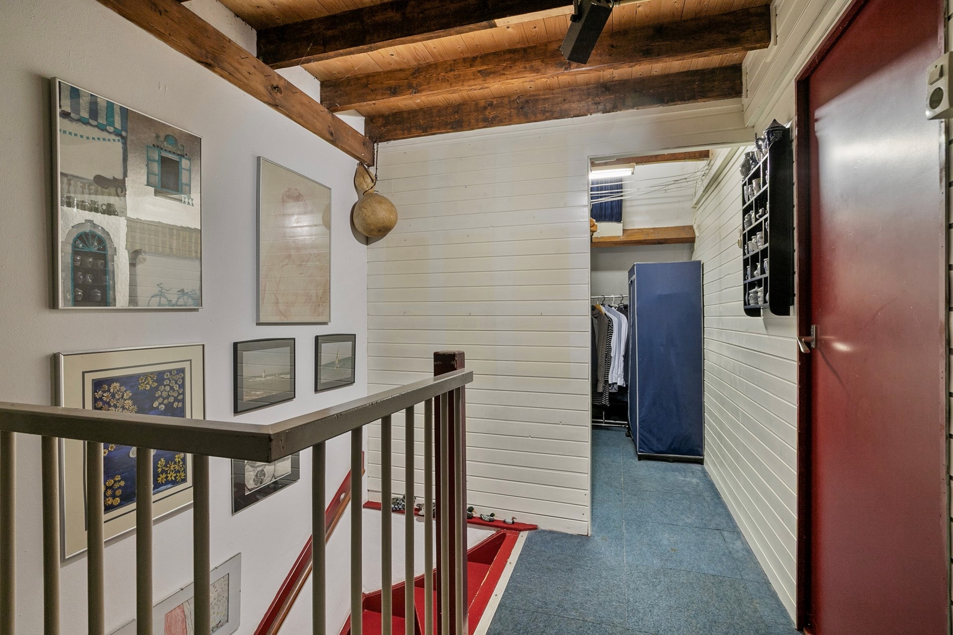 Royale overloop en aparte stook- / wasruimte met aansluitingen voor was- en droogmachine, ook is hier de combi ketel Vaillant type ecoTEC opgesteld, geplaatst in 2018. Boven de overloop en wasruimte bevindt zich een vliering voor extra opslagruimte. Zeer royale 4e slaapkamer met bergruimte onder de dakschuintes, verwarming en groot dakvenster. De tweede verdieping is afgewerkt met tapijttegels, de wanden zijn deels gestuukt en deels betimmerd.