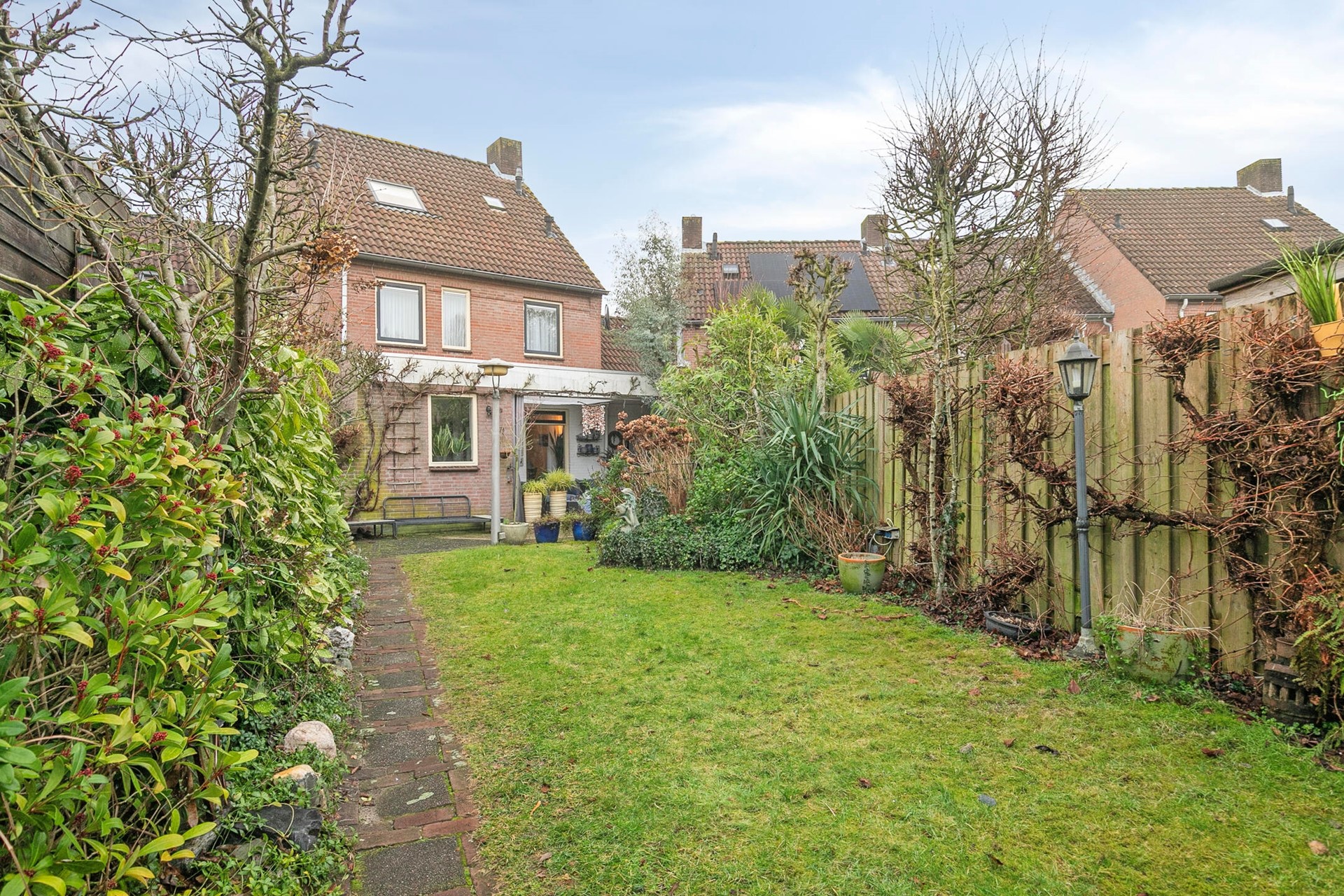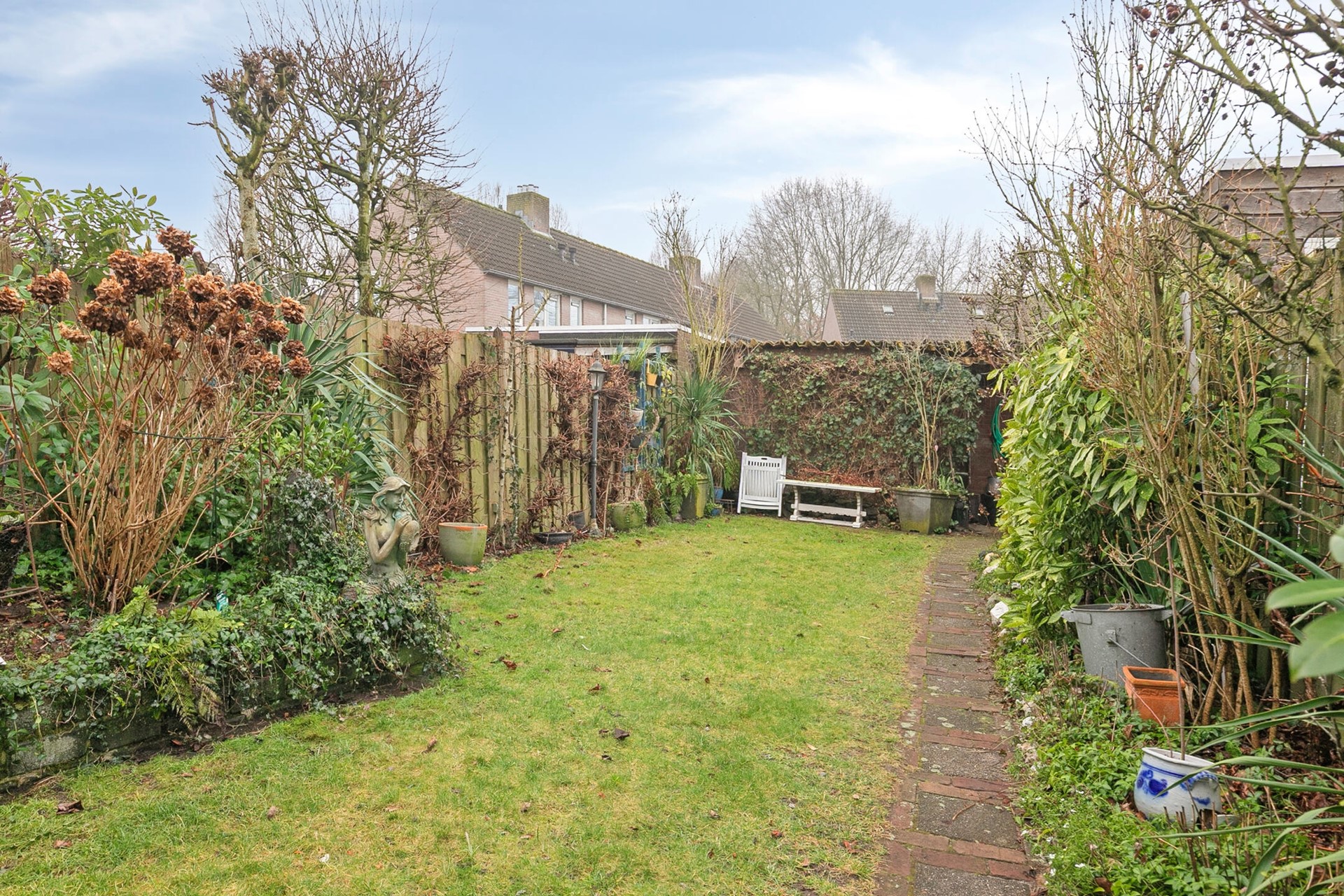 De achtertuin biedt volop privacy, is ongeveer 20 meter diep en ideaal georiënteerd op het zuidwesten. Het achterdakvlak van de woning en garage zijn ideaal georiënteerd voor het eventueel plaatsen van zonnepanelen. Er is een achterom en een houtopslag achter in de tuin tegen de stenen schutting. De achtertuin beidt volop extra bebouwingsmogelijkheden.