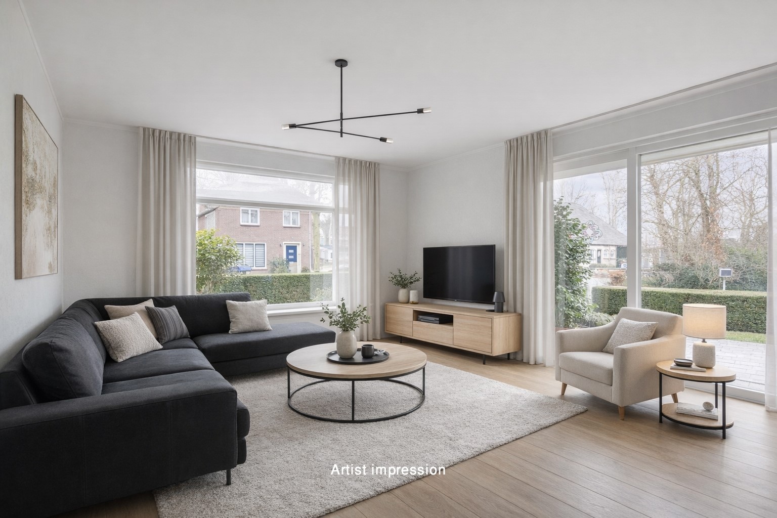 Leuke voor- en zijtuin die de hoek locatie mooi markeert, de voordeur is in de zijgevel gesitueerd.