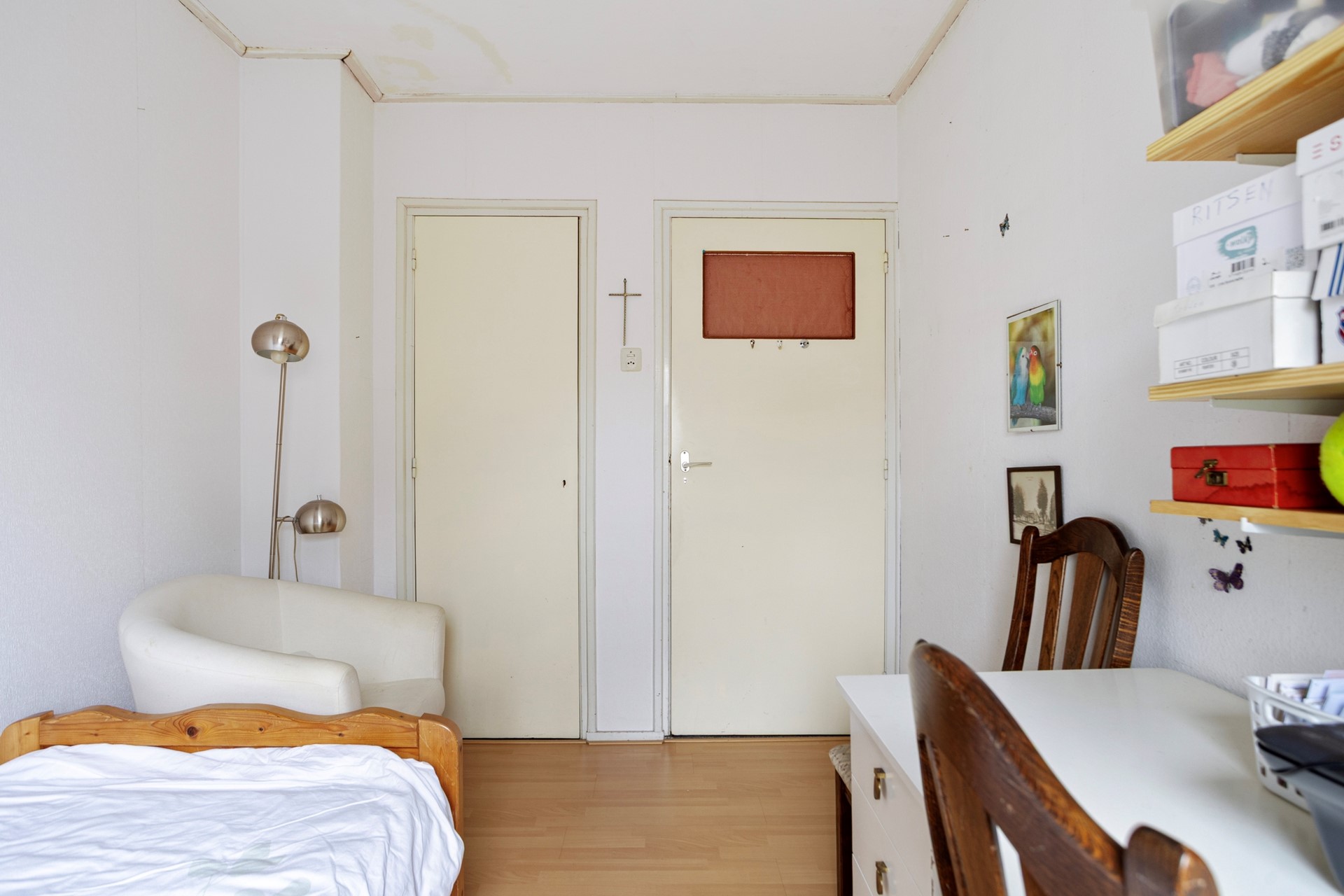 De slaapkamer linksvoor is uitgevoerd met een vaste inbouwkast en de slaapkamer achterzijde is uitgevoerd met een wastafel. De slaapkamers aan de voorzijde zijn uitgevoerd met laminaatvloer en de achterste slaapkamer is voorzien van vloerbedekking, de wanden zijn bezet met stucwerk en grotendeels afgewerkt met behang.