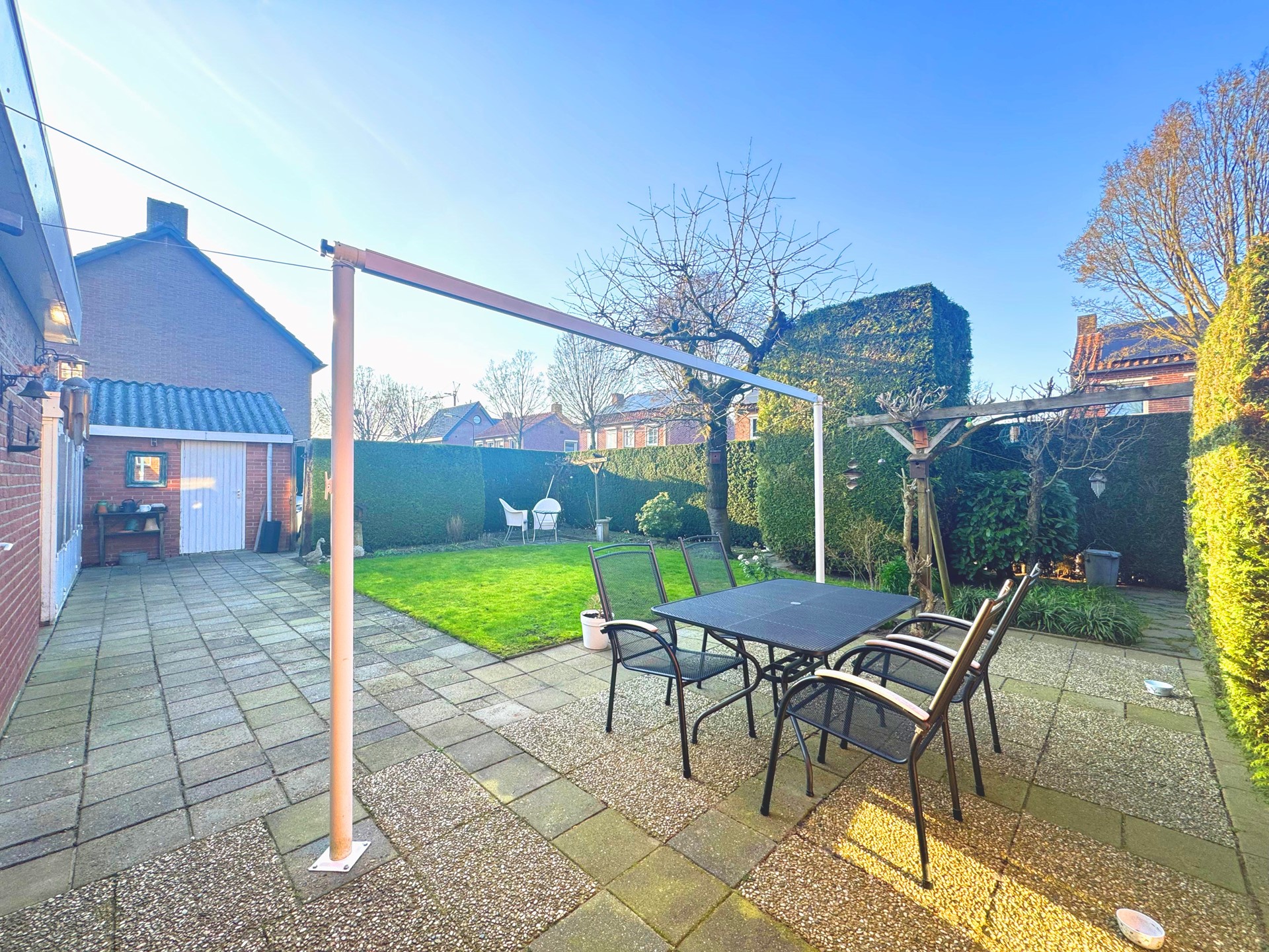 De achtertuin is ongeveer 16 meter diep, 12,5 meter breed en ideaal georiënteerd op het zuidwesten. Het achterdakvlak van de woning is ideaal georiënteerd voor het eventueel plaatsen van zonnepanelen. Riante achtertuin die volop privacy en volop uitbreidingsmogelijkheden biedt.