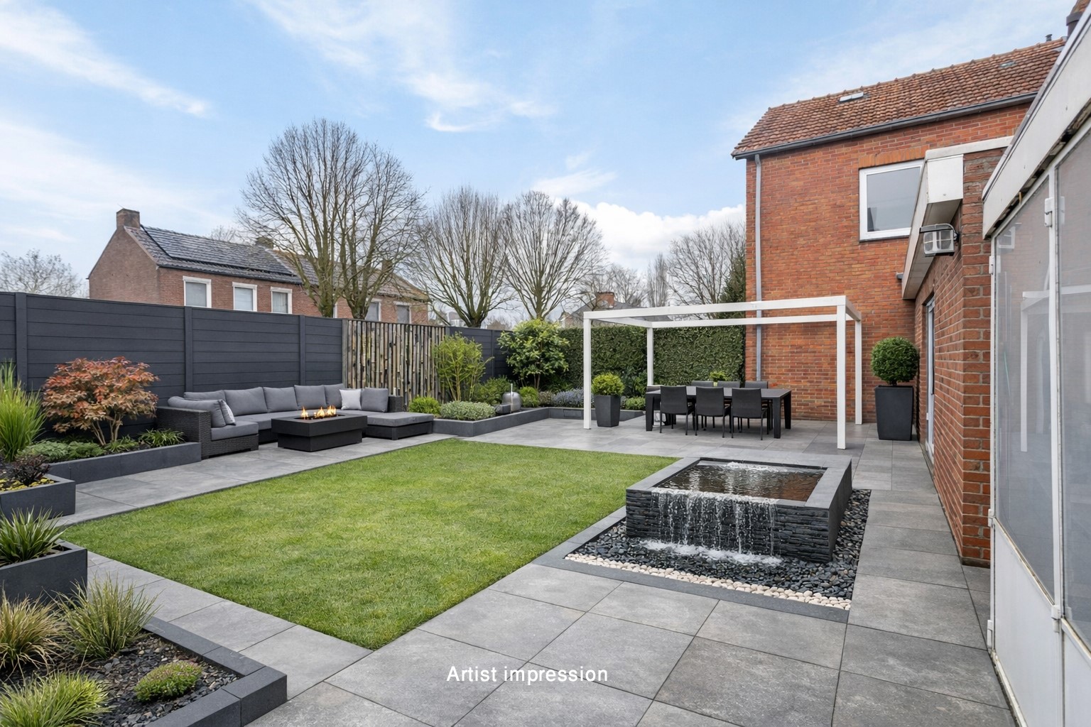 Riante achtertuin die volop privacy en volop uitbreidingsmogelijkheden biedt. Er is een bron aanwezig voor tuinberegening.