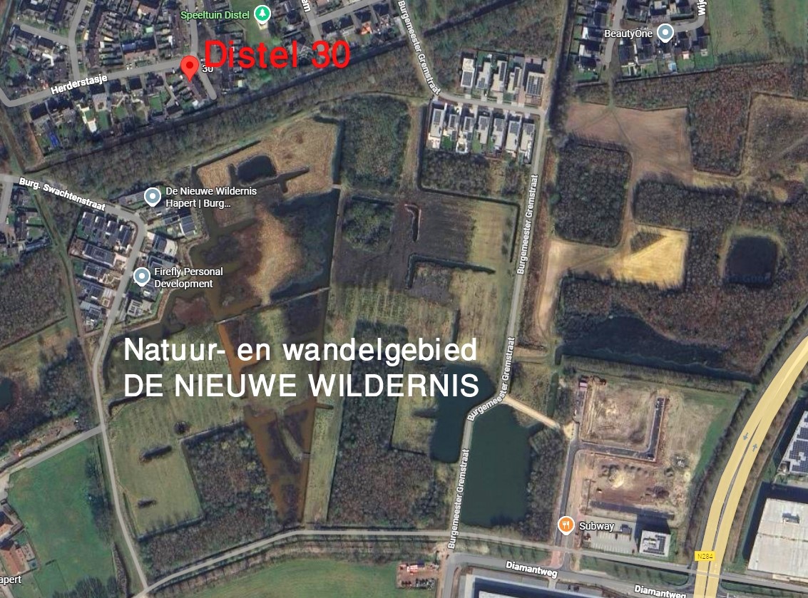 De ligging is perfect: een prettige, kindvriendelijke buurt met speeltuintjes en voorzieningen in de nabijheid. Het centrum van Hapert ligt op korte afstand, terwijl je aan de andere zijde zó het prachtige natuurgebied De Nieuwe Wildernis in wandelt. Ook de bereikbaarheid is optimaal: via de nabijgelegen A67 ben je snel in Veldhoven en Eindhoven.