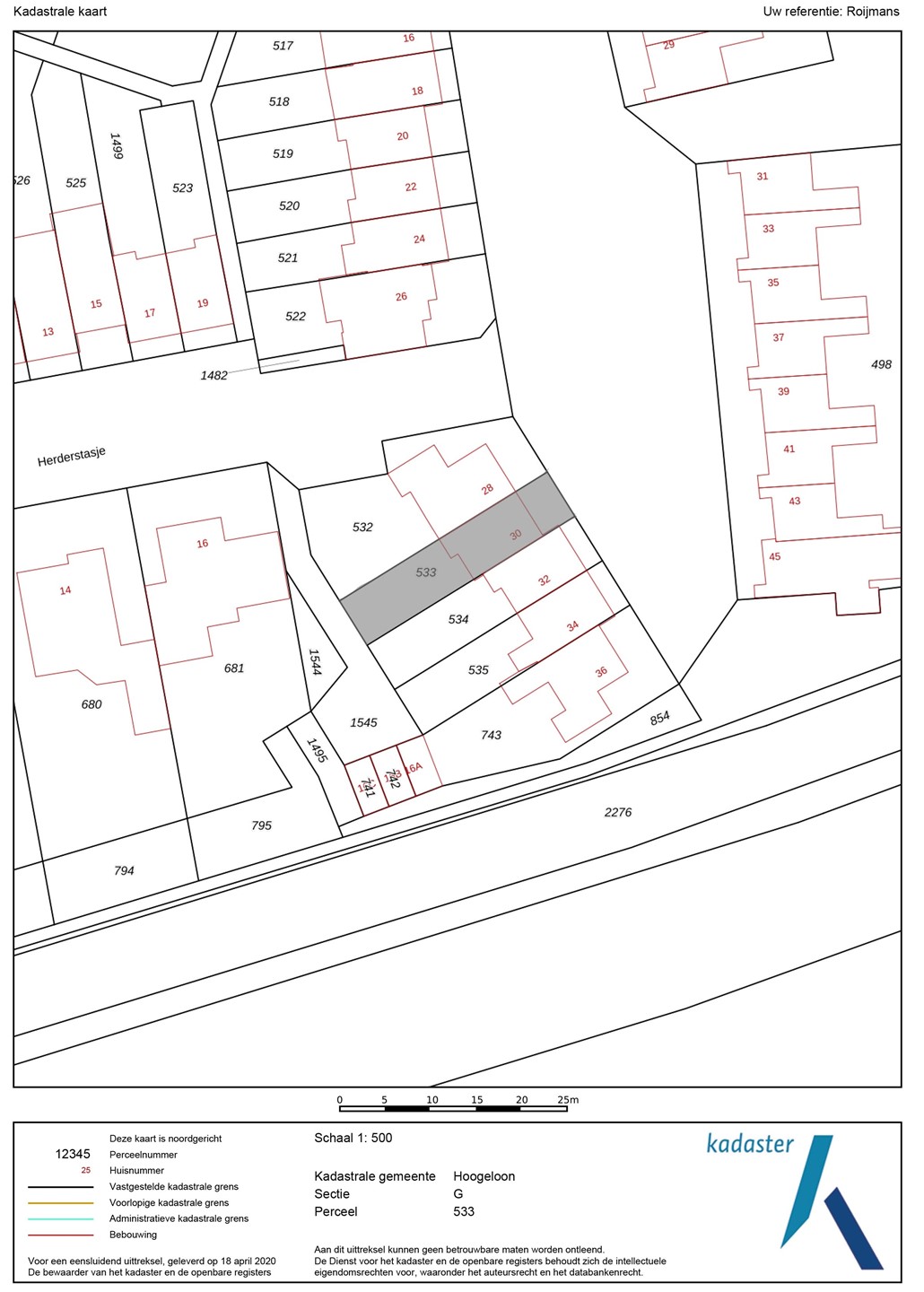 Kadastrale aanduiding Hoogeloon G 533