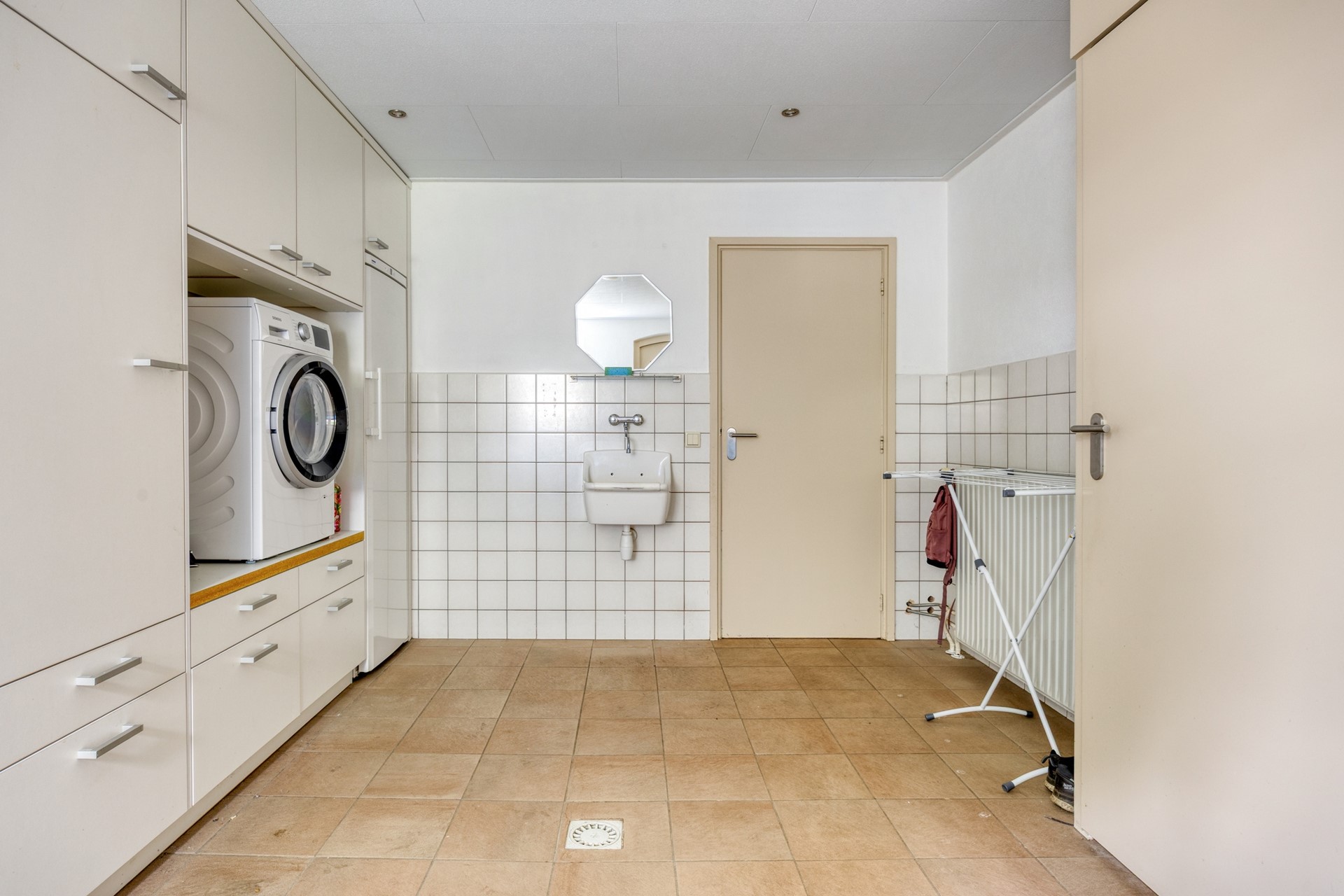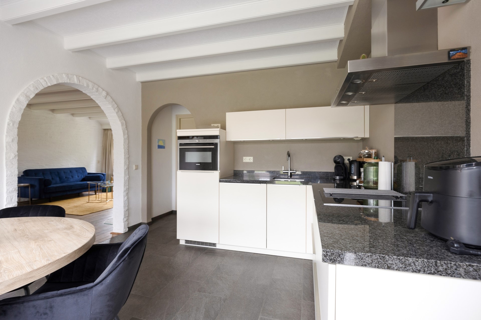 Begane grond: Hal – volledig betegelde toiletruimte met hangcloset en fontein – gesloten keuken met inbouwkeuken (circa 2012) voorzien van inductie kookplaat, afzuigkap, koelkast, combi magnetron en vaatwasser – woonkamer – kantoor – bijkeuken met aansluitingen wasapparatuur, meterkast voorzien van 9 groepen, 2 krachtgroepen en 2 aardlekschakelaars en kastenwand voorzien van koelkast en stortbak.