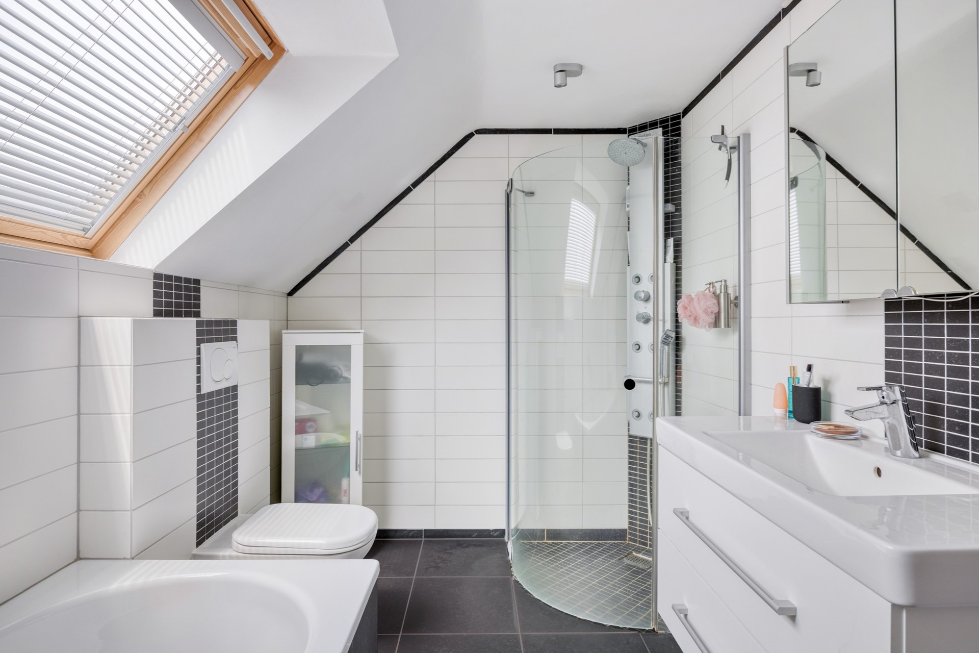 Verdieping: Overloop – ouderslaapkamer met dakkapel – slaapkamer 2 met dakkapel – slaapkamer 3 met dakkapel en wastafel – bergkamer – volledig betegelde badkamer (circa 2011) voorzien van whirlpool ligbad, inloopdouche, hangcloset en badkamermeubel met wastafel.